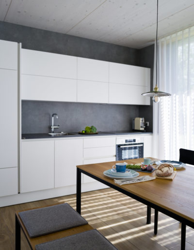 Es war eine Freude, mit dem Architekten Rudi Sommer dieses Projekt zu entwickeln. Entstanden ist ein einfaches, klares Gebäude in Holzbauweise mit zwei lichtdurchfluteten Schlafzimmern sowie Bad und großem Aufenthaltsraum samt Küche. Die Umsetzung erfolgte mit vielen Handwerkern aus der Umgebung und spiegelt den hohen Qualitätsstandard dieser Region wider.
